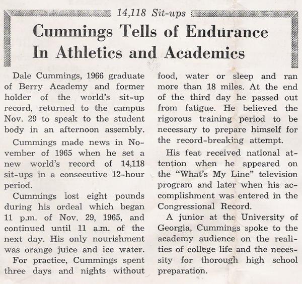 Everyone remembers Dale Cummings for setting the world sit-ups record in 1965 (See the newspaper