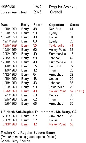 The 1959-60 Berry Basketball Team