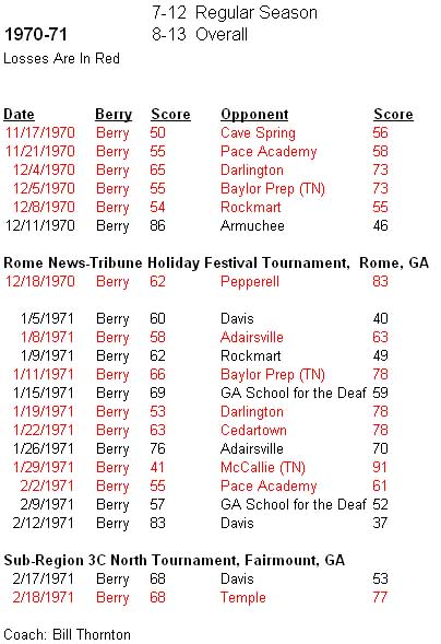 The 1970-71 Berry Academy Falcons